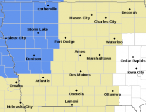 (Des Moines, Iowa) – The National Weather Service’ Hazardous Weather Outlook calls for showers and non-severe thunderstorms to linger this morning into afternoon. Tonight strong to severe thunderstorms are possible, mainly in southwest to central Iowa. The main hazards will be large hail and gusty winds along with localized heavy rainfall.