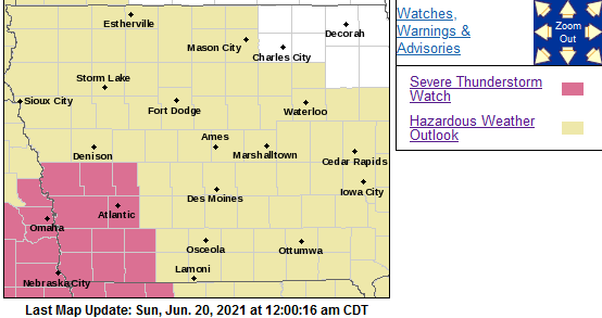 NWS STORM PREDICTION CENTER NORMAN OK 1155 PM CDT SAT JUN 19 2021 SEVERE THUNDERSTORM WATCH 292 IS IN EFFECT UNTIL 500 AM CDT FOR THE FOLLOWING LOCATIONS: IOWA COUNTIES INCLUDED ARE…. ADAMS AUDUBON CASS FREMONT HARRISON MILLS MONTGOMERY PAGE POTTAWATTAMIE SHELBY TAYLOR.