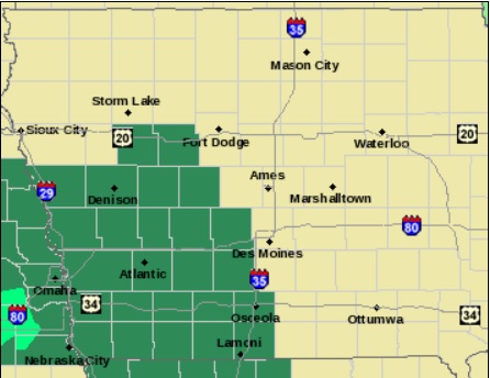 1.5 miles south of Avoca, .9″; Audubon, .75″; 1 mile north of Beaconsfield (Taylor Co.), 1.4″; south of Bedford (Taylor Co.), 2.52″ (as of 6-am); 1 mile west of Blockton (Taylor Co.), 1.74“; Clarinda, 2.7″; 5 miles east/south of Denison, 1.42″‘ Emerson, 2.2″; Irwin, 1.08″; 3 miles east of Manning (Carroll Co.), 1.18″; Massena, .63″; 1 mile south of Mt. Ayr, 1.23″; Red Oak, 1″; Treynor, 3.1″; Villisca, 1.42″.