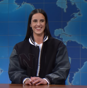 Clark made an appearance this weekend on Saturday Night Live on N-B-C. She sat at the show’s “Weekend Update” desk and lampooned a cast member who’s told several jokes about the W-N-B-A — and this year’s N-C-Double-A women’s basketball tournament.