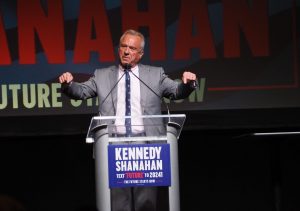 (Des Moines, Iowa [via the Iowa Capital Dispatch] – Independent presidential candidate Robert F. Kennedy Jr. called for voters to reject the two-party system and support him for president at an Iowa event Saturday aimed at getting on the state’s general election ballot. Speaking to a crowd of more than 700 at Val Air Ballroom in West Des Moines, Kennedy said he was asked earlier in the day about a recently published New York Times/Siena College poll that found he had only 2% of support in the general election. “Do you think if I only had 2% support that this big a crowd would come in here today?” Kennedy said.