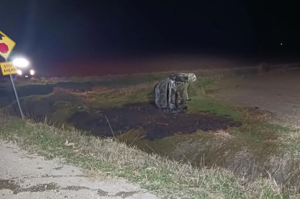 An initial investigation determined the vehicle had left the road and rolled into a field before catching fire. Persons who were in the vehicle got themselves out following the crash, and were evaluated by medics, but refused treatment at the scene. No names were immediately released.