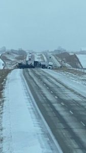 (Shelby, Iowa) – The Iowa Department of Transportation reports (511ia.org) Interstate 80 westbound, between Exit 34: County Road M16 and Exit 29: County Road L66 (near Shelby) is partially blocked (as of the latest information). The blockage is due to a crash in that area. (Photos of the scene are courtesy of Zach Ploen)