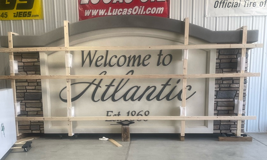 (Atlantic, Iowa) – A new, massive concrete entrance sign welcoming visitors to Atlantic will be installed soon at the intersection of Highways 6 and 71 (Near the Walmart store), on the east side of town. During Tuesday’s Atlantic City Council meeting, City Administrator John Lund said the sign was produced by J.J. Graphic Design, in Atlantic. The huge sign will be placed upon an equally large pedestal