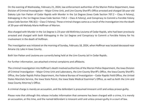 After her prison term, Fiedler will also serve one year under supervised release. The federal system does not allow for parole. Bigler was sentenced in July 2023 to 15 years in prison and three years of supervised release.