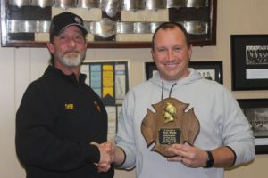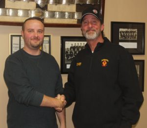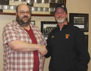 Pictured (from left to right) Atlantic Fire Chief Tom Cappel presented the “Firefighter of the Year” Award to Paul Wood on Saturday night during the firefighter banquet.