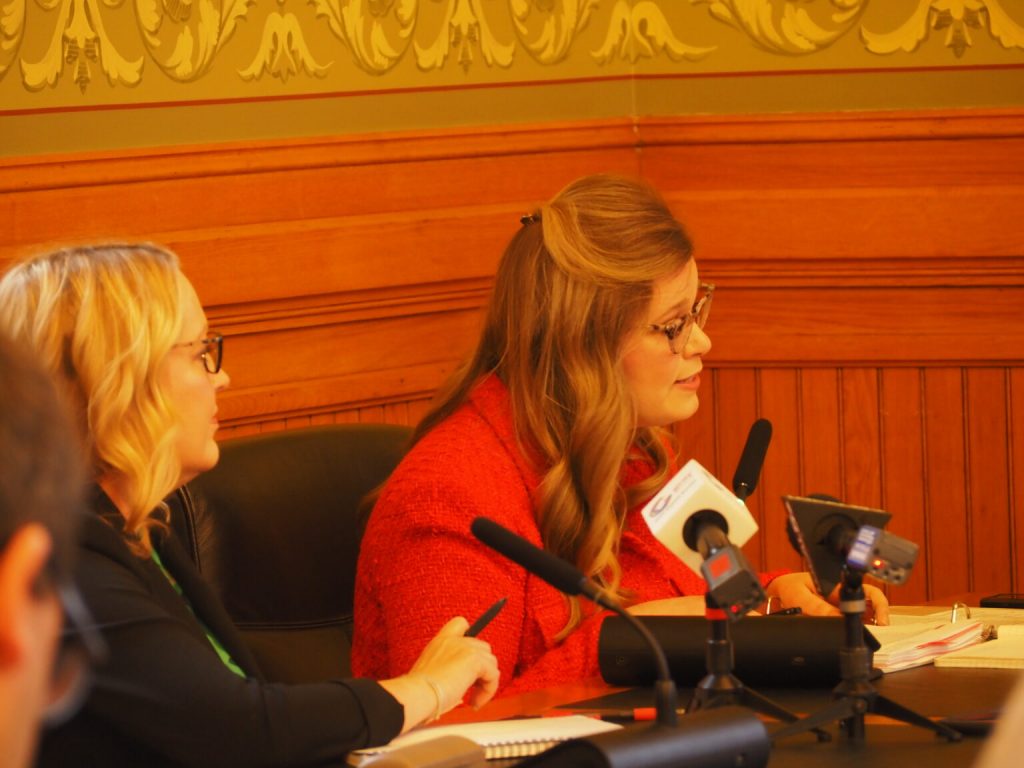 Iowa Department of Education Director McKenzie Snow answered questions from Senate panel considering her appointment to continue serving in the position on March 26, 2024 at the Iowa State Capitol. (Photo by Robin Opsahl/Iowa Capital Dispatch)