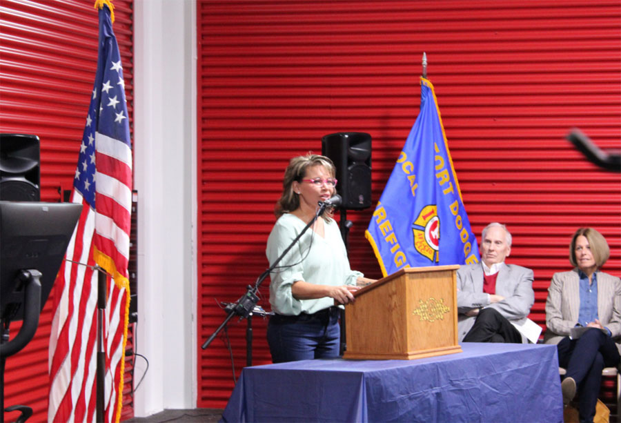 (Radio Iowa) – In an update to our earlier report, the state’s first Safe Haven Baby Box is now available on the north side of the Fort Dodge Fire Department. The box was christened Thursday with a blessing and ribbon cutting ceremony. The founder and C-E-O of the company that makes the boxes, Monica Kelsey, is a retired firefighter medic, ex military and says she has always been on the frontlines of trying to protect something.