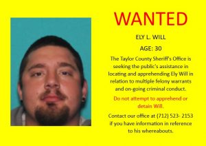 (Bedford, Iowa) – The Taylor County Sheriff’s Office is asking for your help in locating and apprehending 30-year-old Ely Laramie Will. He’s wanted on multiple warrants throughout the state of Iowa for theft and violations of his probation. Will is a white male, 5-feet 10 inches tall, and weighs about 230-pounds. He was last known to be in the Lenox, Clearfield and Creston areas.