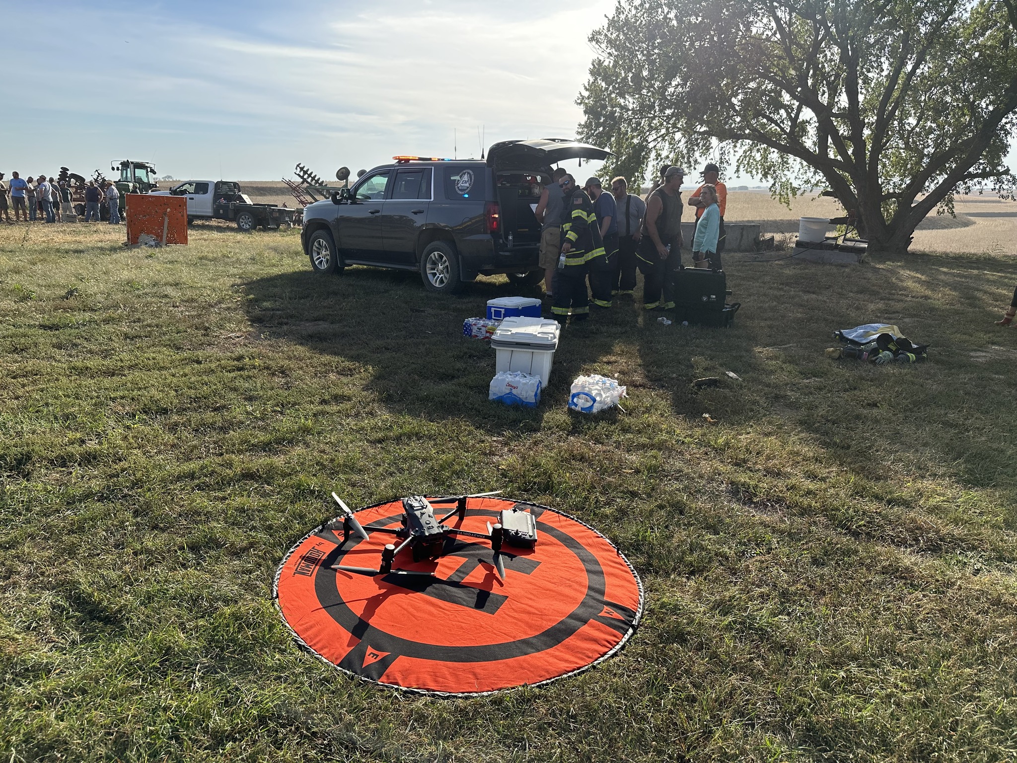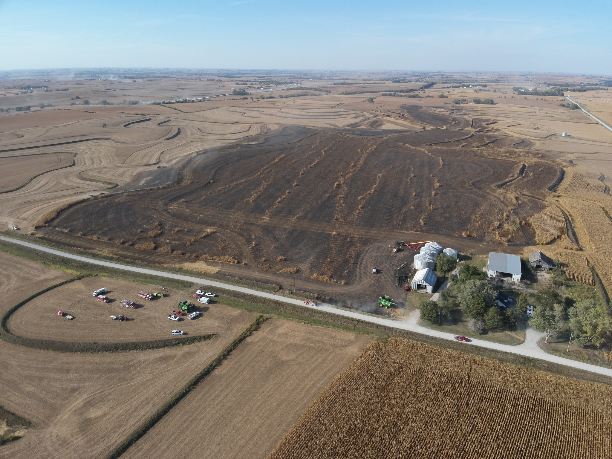 Sunday’s fire took over a half dozen fire agencies and over a dozen farmers with tractors and discs to contain. Agencies responding to the incident included: