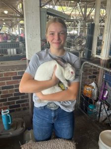 (Des Moines, Iowa) – Atlantic FFA Advisor/Ag Instructor Eric Miller reports that on the first official day of the Iowa State Fair, Thursday, members of the Atlantic FFA Chapter continued to earn awards with their projects. The day began with Claire Schroder and her rabbits in the FFA Rabbit Show. In class 2 FFA Pin of Three Fryer Rabbits, Schroder placed 2nd earning a Purple Ribbon. She continued the show earning 3 Blue Ribbons along the way. Schroder said, “I think showing rabbits was a great way to experience my first year showing at the Iowa State Fair. Everyone is very helpful, and they know what they are doing. I encourage and support everyone to show rabbits at the state fair if they can!”