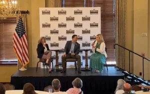 Iowa Senator Joni Ernst, on left, hosts Wisconsin Congressman Mike Gallagher and Iowa Congresswoman Ashley Hinson at The Bastion Institute event today in Cedar Rapids.