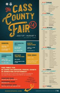 The crowning of the 2023 Cass County Fair King and Queen will take place in the north garden of the Cass County Community Center at 7:30-p.m., Thursday. The evening will kick off at 7:00 pm with the Little Miss and Mister contest. Cass County youth ages 5-8 can participate by signing up in the Extension Office by noon on Wednesday, July 26th. All contestants introduce themselves to the crowd before a winner is drawn out of a hat.