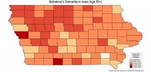(Radio Iowa) – The Alzheimer’s Association is releasing its first-ever nationwide report, offering a county-by-county breakdown of the prevalence of that form of dementia, including in all 99 Iowa counties. According to the report, the average Alzheimer’s prevalence rate in Iowans age 65 and older is 11%.
