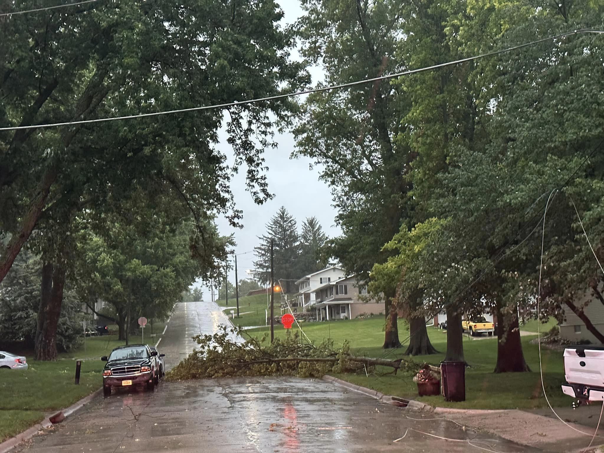 7:10-a.m. Tree down across the road at 3rd and Linn, in Atlantic.