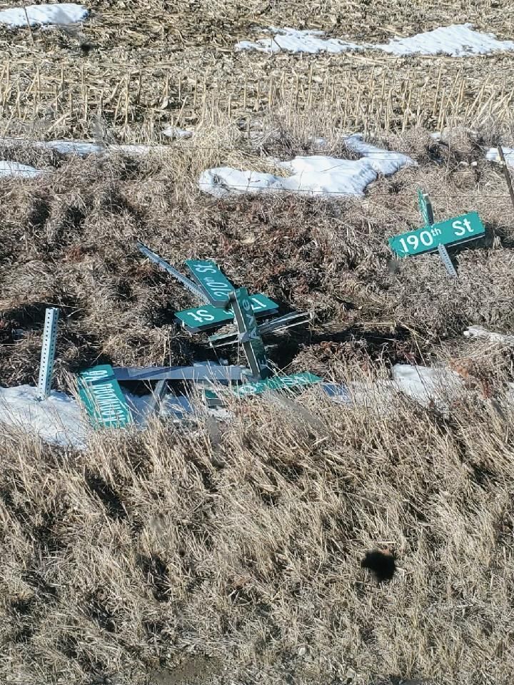 Crawford County Engineer Paul Assman told our sister station KDSN that they discovered almost a dozen road signs dumped in a ditch along 210th Street north of L Avenue. “Some sort of a Sawzall or cutting wheel and just cut the steel posts off. Really pretty senseless. Not quite sure what the motive there was to do that. We would seek damages from them and press charges, of course,” Assman said.