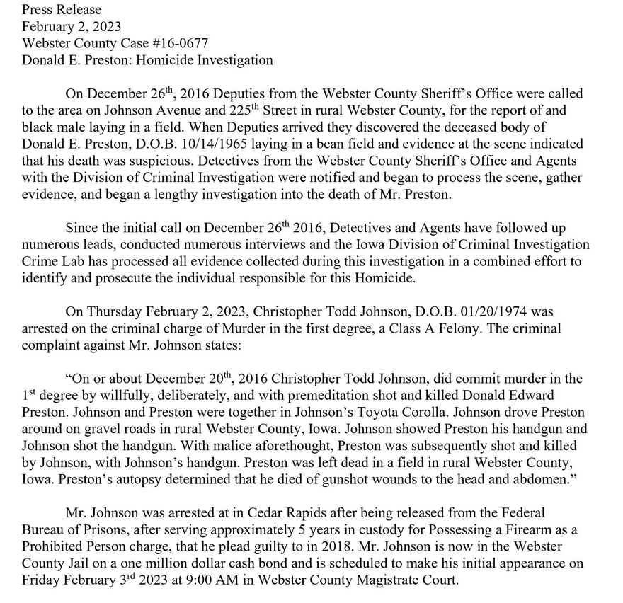 The Urbandale Police Department, Iowa Internet Crimes Against Children Task Force, and the Federal Bureau of Investigation Human Trafficking and Child Exploitation Task Force investigated the case.