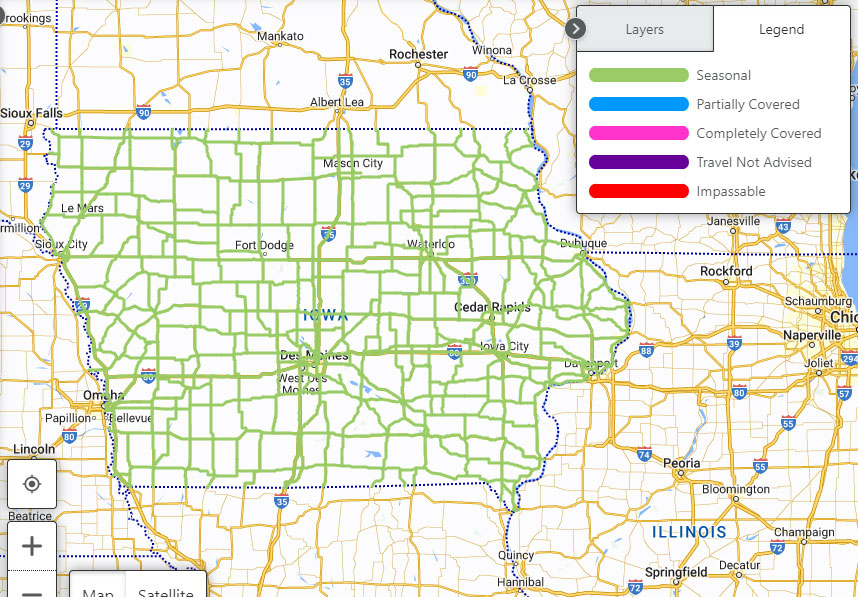 (Radio Iowa) – We got our first taste of snow across the state and the first winter driving conditions today (Tuesday). The Iowa D-O-T’s Sinclair Stolle says the 511ia.org website can help you navigate this winter and that includes personalizing the info. “One of the ways to do that is the layer bar that’s on the far right side of the map. This also includes a legend tab that is dynamic based on the layers that you have turned on,” Stolle says. She says it makes it easy when you want to quickly check out the information on the 511IA.org site.