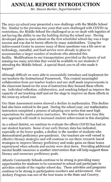 Here are Superintendent Steve Barber’s notes on the Annual Report: