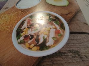 Serve with avocado, cheese, sour cream and tortilla chips.