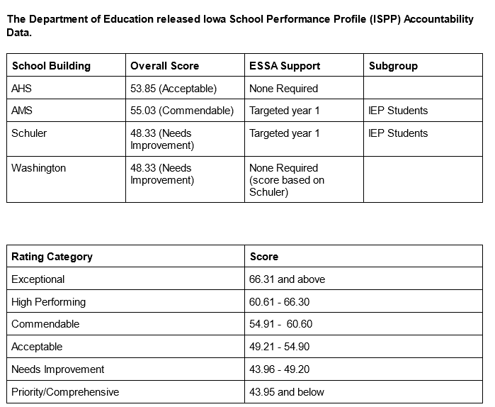 “Both the High School (Acceptable) rating and Washington are not required to have any additional support. Washington only administers the ISASP’s test to third graders, which provides too small of a sample size to garner a rating.”