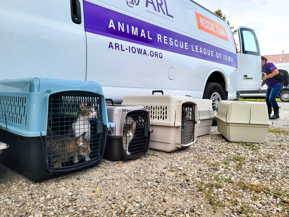 (Des Moines, Iowa) – The Animal Rescue League of Iowa reports its Mobile Rescue Team received a call to help a family struggling to provide for a large number of sick cats and kittens that had multiplied in their home. Officials say as the team entered the home, Wednesday, they were hit with ammonia so strong it burned their eyes and throats. Cats and kittens were everywhere, walking on a floor covered in feces. Even being in the home for a few minutes was difficult. Crews quickly began loading them into clean carriers to get them help as soon as possible.