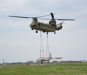 (Radio Iowa) – An historic F-80 fighter jet made a flight to Sioux City for repainting with an assist from a Davenport-based Iowa Army National Guard Chinook helicopter.