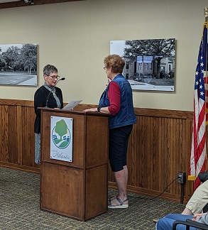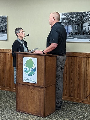 (Atlantic, Iowa) – Atlantic Mayor Grace Garrett, Wednesday evening, issued the Oath of Office to the two newest members of the City’s Parks and Recreation Department Board. The Parks Board, during their meeting Monday evening, selected Jeremy Butler to succeed Ashley Hayes, who resigned in August. And, Shirley Jensen, who was already on the Board, but had been improperly given the Oath when she was appointed to the Board, was sworn-in.