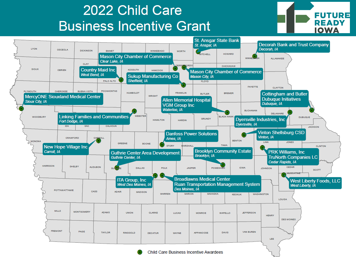 Including today’s announcement, the state of Iowa has awarded 191 projects with approximately $75.6 million in grant funding to help create over 10,700 new child care slots.