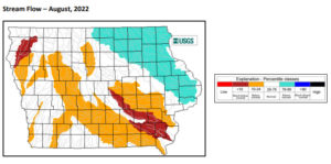 “We haven’t seen but one month this year, where we’ve had above normal rainfall statewide. We haven’t seen the conditions that we’d like to see that’ll start to dig us out of this long-term condition.” Rivers and streams are running low in some of the drought areas — which can lead to more problems.”There’s water quality issues that come along with decreased streamflow and groundwater. There’s some communities battling nitrate issues. So in northwest Iowa, it’s not very good. And if you look at the streamflow in southeast Iowa, it is also trending downward,” according to Hall.