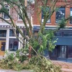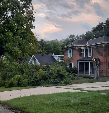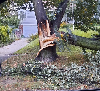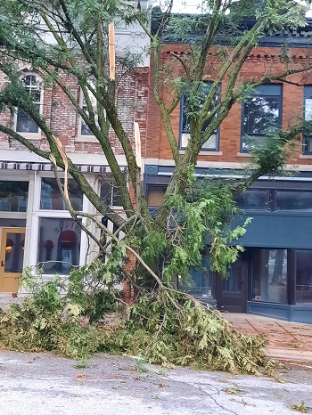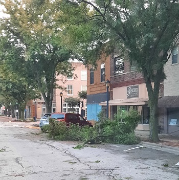 (Atlantic, Iowa) – Fierce winds and heavy rain blew through parts of western and central Iowa, Saturday evening and night, causing a power outage for part of Atlantic, as tree limbs broke and fell on power lines. As with previous Derecho-type winds, trees were left shredded in some areas, especially in downtown Atlantic, where KJAN’s Lori Murphy snapped some pictures of the damage. (See photo’s, click on image to enlarge). Winds gusting up to 55-miles per hour caused tree damage in Red Oak at around 6:30-p.m.