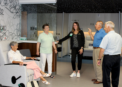After the announcement, visitors toured the newly expanded space and talked with the staff. Cass Health Specialty Clinic Director Traci Brockman, RN, said “This space has become a calming refuge for patients who often spend hours receiving treatments, like chemotherapy. We put a lot of thought and care into the details. The chairs have heat and massage functions, the colors are subdued, and we have a custom ceiling with star lights. All of these things help create a healing environment for our patients to relax.”