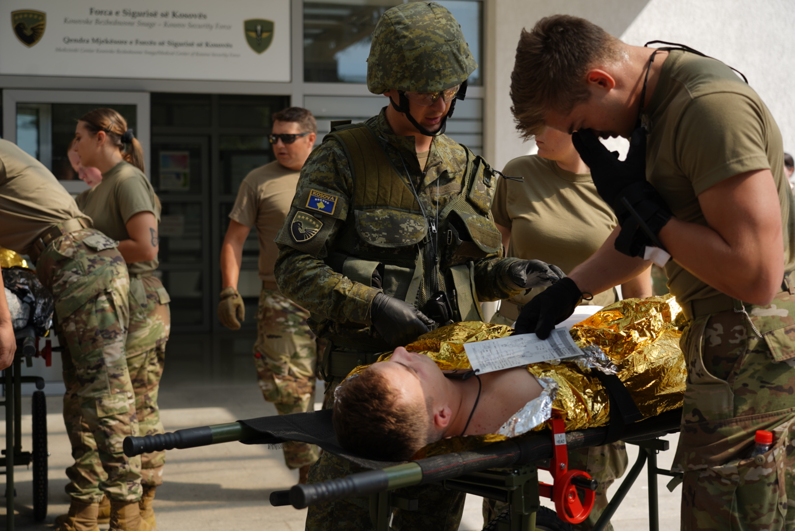 Airmen with the 132d Air Wing, based in Des Moines, IA conduct joint medical training with Kosovo Security Force members in Pristina, Kosovo in August 2022.