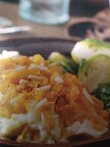 Combine topping ingredients; sprinkle over top of casserole. Bake, uncovered, at 350 degrees for 40-45 minutes or until bubbly.
