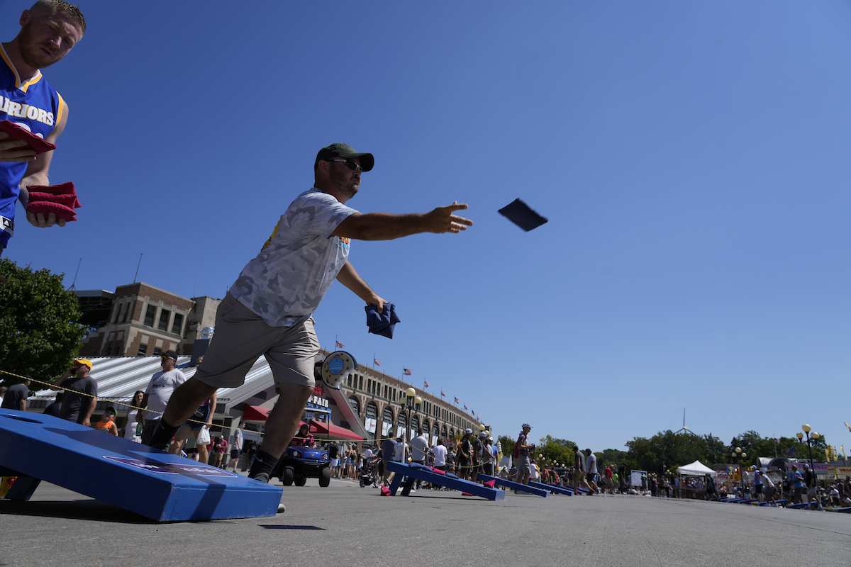 (Des Moines, Iowa) – Whether you call it bags, backyard toss, bagg-o, Chuck-o, bean bags or cornhole, the Iowa State Fair is the new title holder for the GUINNESS WORLD RECORD for the largest cornhole tournament on Saturday, August 20th. The old record was 444 participants set by an organization in San Diego, California in June of 2019. Guinness World Records officially counted 730 participants in the Iowa State Fair event on August 20, 2022. The number crushed the previous record by more than 280 people and made the Iowa State Fair the official record holder.