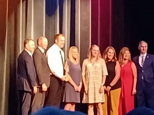 Photo of Schuler Elementary Staff on stage for their award (Principal James Northwick, center) – Photo courtesy of Pat Powers/KQWC Radio