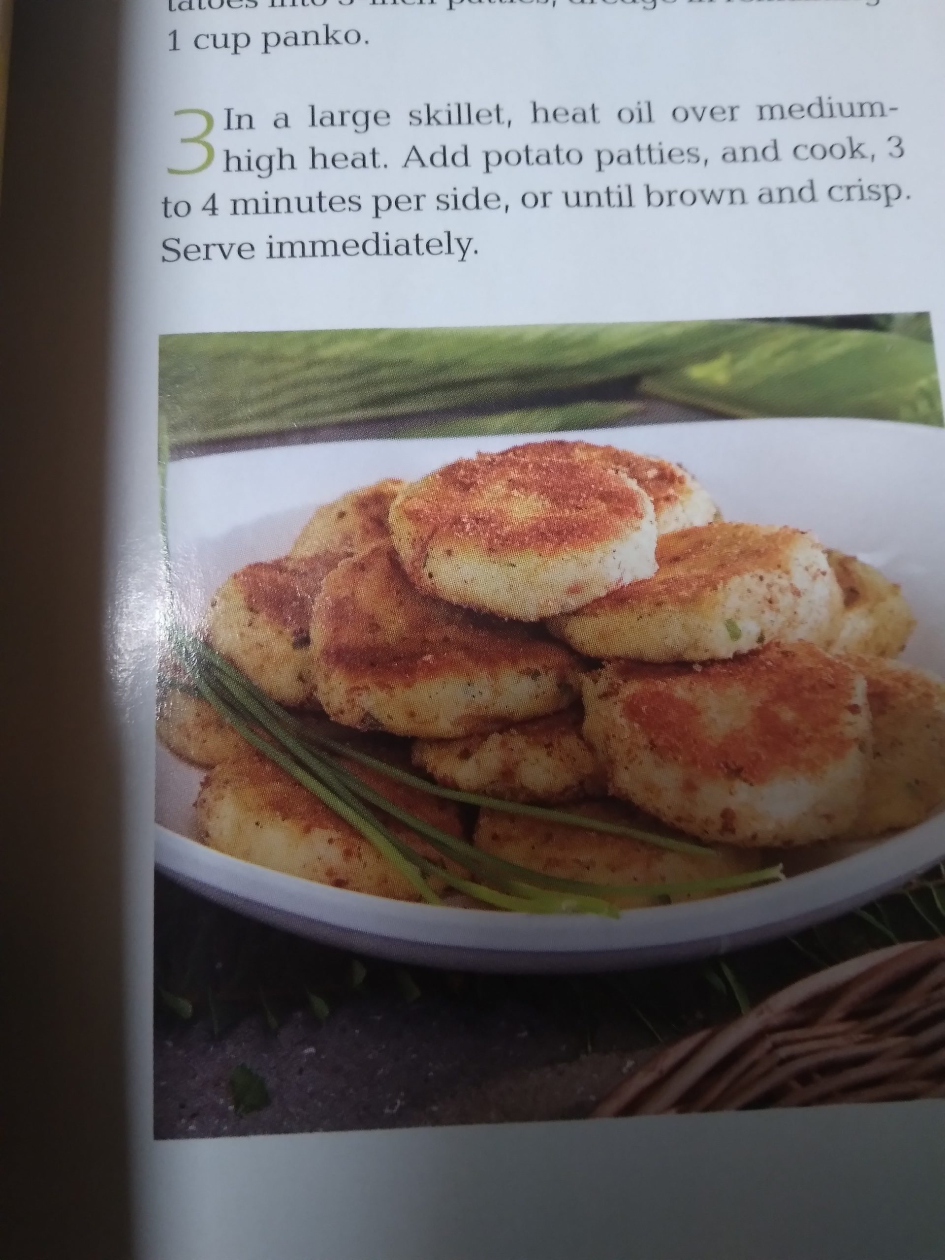 In a large skillet, heat oil over medium-high heat. Add potato patties and cook 3-4 minutes per side or until brown and crisp. Serve immediately.