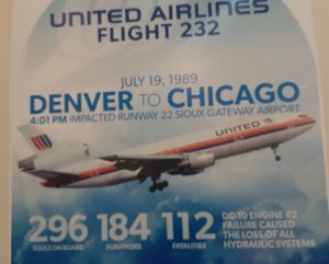 (Radio Iowa) – This week marks the 33rd anniversary of the crash of United Airlines Flight 232 at the Sioux Gateway Airport in Sioux City. An exhibit honoring the emergency response is on permanent display at the city’s Mid America Museum of Aviation and Transportation. Museum director Larry Finley says visitors still come to learn about what happened that day when 184 of the 296 passengers and crew survived the fiery cartwheel crash down the runway and into a cornfield.