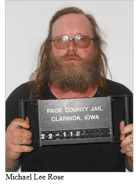The Page County Sheriff’s Office reports the arrest on Thursday (April 14, 2022), of 46-year-old Michael Lee Rose, from Hepburn. Rose was arrested on a Page County Warrant for Failure to Appear – at a Revocation hearing for Violation of probation. The hearing was with regard to a sentencing charge of Possession of a Firearm or Offensive Weapon by a DA Offender.