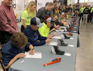 The day is designed to give students a chance to see the opportunities there are for welders, electricians, carpenters and others in the construction and manufacturing industries. More than a dozen high school students participated in a signing ceremony, pledging that they intend to work in the skilled trades after graduating from high school. Governor Kim Reynolds signed each student’s letter of intent.