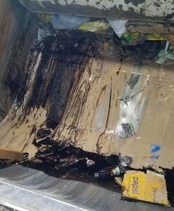 (Malvern, Iowa) – Officials with the City of Malvern are warning residents not to put used motor oil in with your trash for pickup. Not only is the practice dangerous for Iowa’s water and soil quality, but it is against the law to dump in the landfill. Operators with Konfrst Trash informed the City of refuse containing used motor oil that was found during this week’s garbage collection. A picture shows when the trash was compacted inside the garbage truck, the oil leaked and was spread inside the hopper/compactor and collection box.