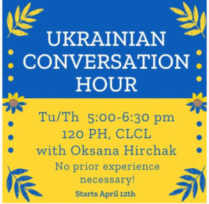 She’ll host her first “Ukrainian Conversation Hour” next Tuesday night on the University of Iowa campus.