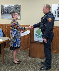 Atlantic Mayor Grace Garrett congratulates new Police Chief Devin Hogue
