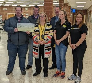 (Atlantic, Iowa) – Regional and local representatives of Dollar General were in Atlantic Wednesday afternoon, to make a donation for disaster relief to the Atlantic Middle School Library. Stopping at the High School for a $10,000 check presentation, was Dollar General Southwest Iowa District Manager Howie Erickson, Regional Director Paul Vilinski, and Store Manager Robyn Sullivan, and Assistant Manager Kim Ruiz.