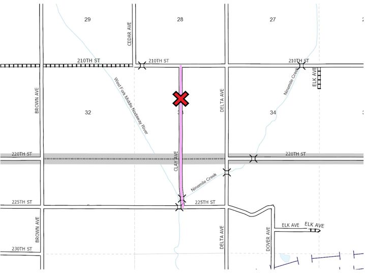 The Adair County Engineer’s Office reports Clay Avenue is closed to traffic roughly 0.5 miles south of 210th St. for a culvert replacement project. This project is expected to last 3-4 weeks. (May 29th to April 22nd)