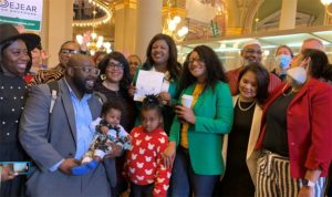 (Radio Iowa) – After announcing she was running for governor seven months ago, Democrat Deidre DeJear has now submitted 66-hundred signatures on nominating petitions, to place her name on Iowa’s June Primary ballot. “We just made history,” DeJear said, to cheers. If elected, DeJear would be the first black Iowan to serve as governor. She addressed a crowd of supporters in the Capitol rotunda. “It’s the type of history that outlines possibilities for not only our young people, but each and every one of you all,” DeJear said. “We’re seeking to run for this office because we want to see change happen in this state, the type of change that impacts y ‘all’s pocketbooks, your communities, your counties and the better life that we can all have in this state.”