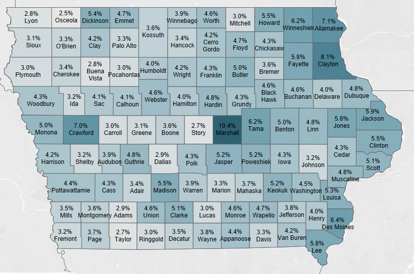 (Radio Iowa) – Iowa’s unemployment rate dropped to three-point-seven percent in January. The rate was down from the revised December rate of three-point-nine percent. Iowa Workforce Development says the leisure and hospitality industries added the most jobs in January — up 25-hundred. I-W-D says the industry saw a loss of 800 jobs in December — but has generally trended up steadily since COVID quarantines ended.