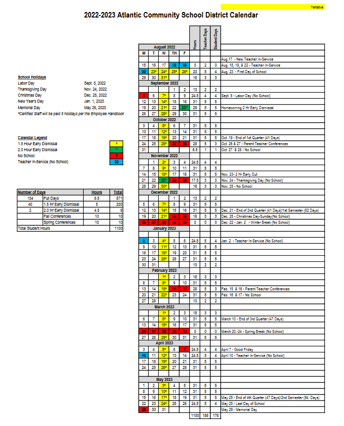 In addition to the school calendar hearing, March 16th at 5:30-p.m., is also the date/time for a Public Hearing on the High School South Parking Lot Project. The Atlantic School Board moved discussion with regard to the 2022-23 Certified Budget Review from March 23 to the 16th, also, due to schedule conflicts. Spring Break in Atlantic takes place from March 21st through the 25th.