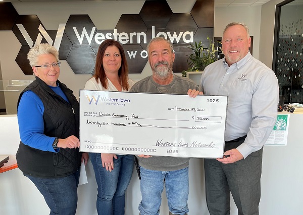Breda, IA (December 30, 2021) – Western Iowa Networks (WIN) recently presented the City of Breda, IA with a check for $25,000 to help with fundraising efforts for their pool project. The donation will help the city as the finishing touches are completed on this restoration project.