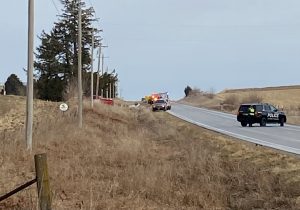 (UPDATE 9:22-a.m.) The road was very icy, w/a coating of frost. Rescue crews are still on the scene. Both lanes of traffic were blocked by emergency equipment and personnel. Avoid the area for now.